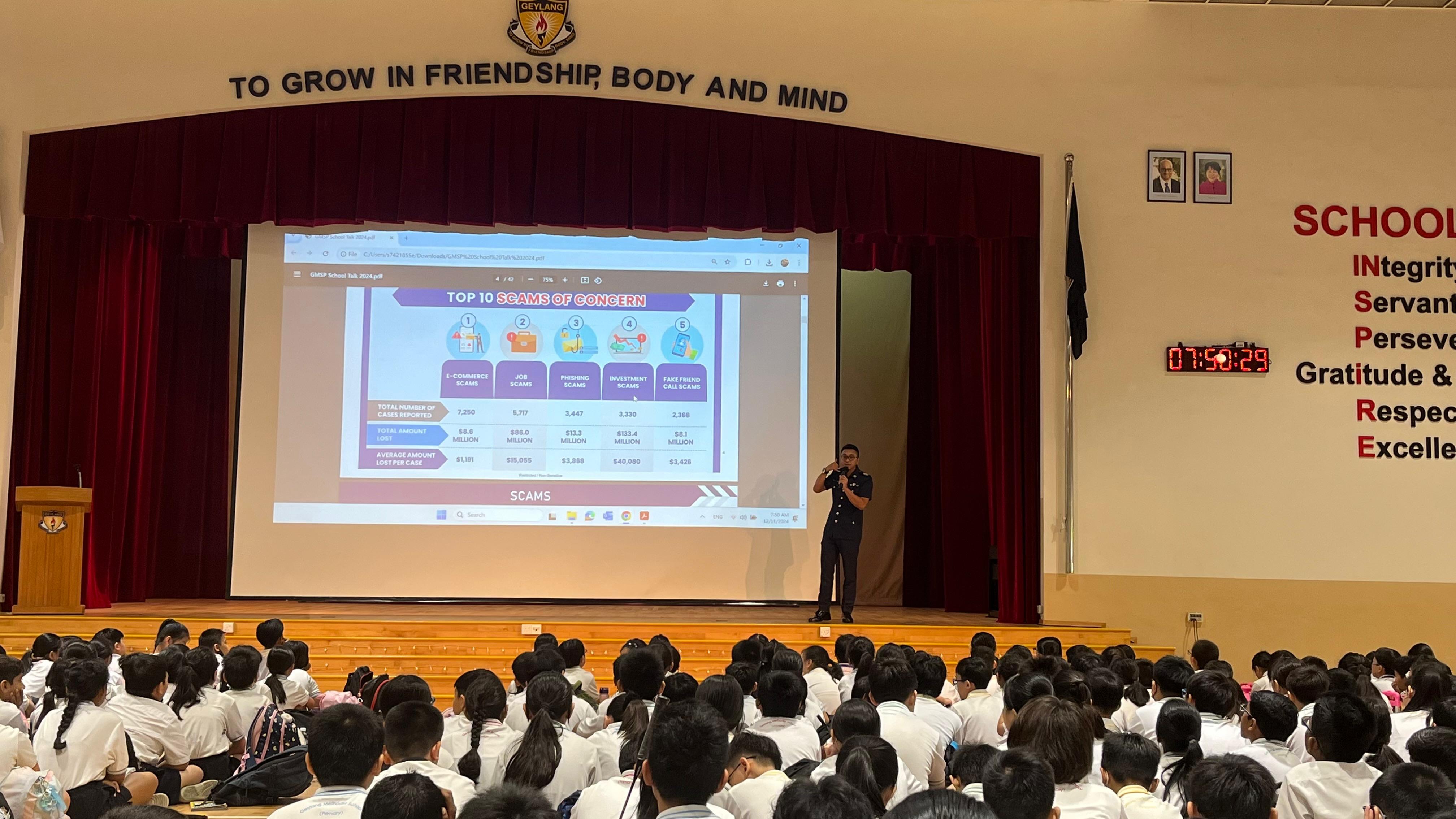 The school partners with external partners like our Community Police and CNB for awareness during assembly talks and recess activities.
